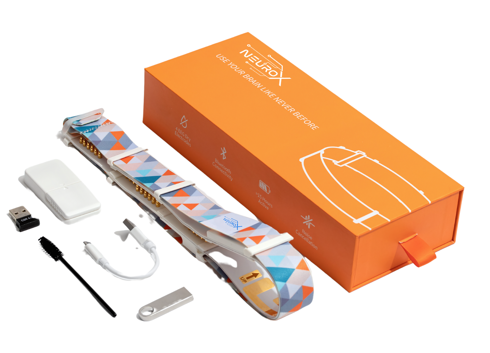 Neurox Headband is a smart EEG device which monitors brain activity and gathers data that can be converted and used without professional help in reading. The headband has 4 dry EEG electrodes located at T3, T4, O1, O2 according to the international 10-20 electrodes placement scheme.